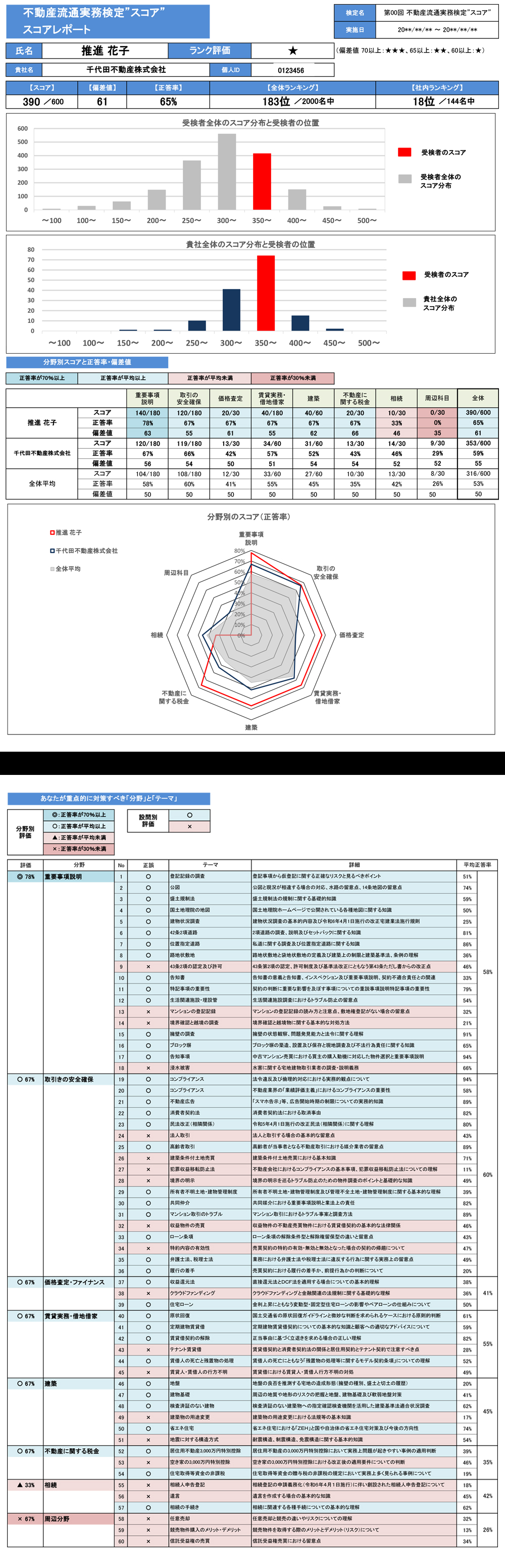 ① 検定名 例)第●回不動産流通実務検定“スコア“